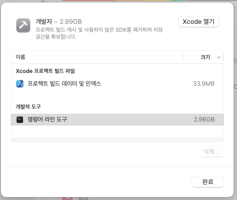 5. xcode 프로젝트 빌드파일 내 xcode 캐시 삭제하기